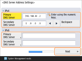 <Use Same Host Name/Domain Name as IPv4>: این را روی <On> تنظیم کنید تا همان تنظیمات IPv4 به IPv6 اعمال شود.