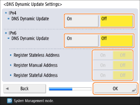 <DNS Dynamic Update>: برای اجرای بهروزرسانی خودکار هنگامی که ارتباط میان نام میزبان و آدرس IP در محیط DHCP تغییر میکند و غیره، این را روی <On> تنظیم کنید.