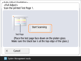 صفحه آزمایشی 1 را روی صفحه شیشهای قرار دهید و <Start Scanning> را فشار دهید.