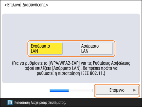 Εάν έχει επιλεχθεί το <Ασύρματο LAN>προχωρήστε στο