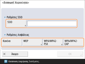 Εισαγάγετε το SSID του δρομολογητή ασύρματου LAN για να συνδεθείτε και επιλέξτε τις ρυθμίσεις ασφάλειας.
