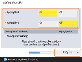 <IPv4: Ρυθμίσεις Διεύθυνσης IP> και Ρυθμίσεις IPv6