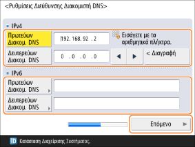 <Ρυθμίσεις Διεύθυνσης Διακομιστή DNS>