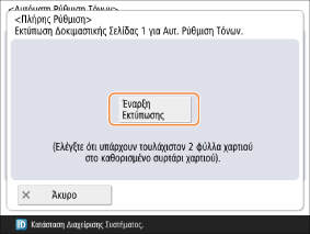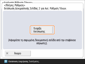 Πατήστε το κουμπί <Έναρξη Εκτύπωσης> για εκτύπωση της Δοκιμαστικής Σελίδας 1.