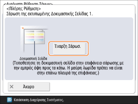 Τοποθετήστε τη Δοκιμαστική Σελίδα 2 πάνω στην επιφάνεια σάρωσης και πατήστε το κουμπί <Έναρξη Σάρωσ.>.