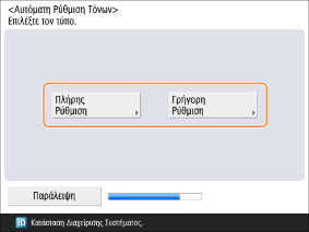 Εάν δεν θέλετε να εκτελέσετε ρύθμιση, πατήστε το κουμπί <Παράλειψη> και προχωρήστε στο