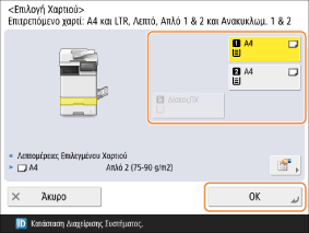 Επιλέξτε το χαρτί που θα χρησιμοποιήσετε και πατήστε το <OK>.