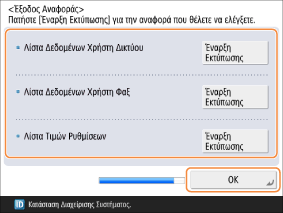 Πατήστε <Έναρξη Εκτύπωσης> για έλεγχο της αναφοράς και πατήστε το <OK> όταν ολοκληρωθεί η εκτύπωση.