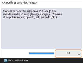 Ko pritisnete <OK>, se naprava znova zažene.