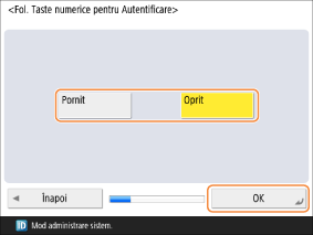 Selectaţi <Pornit> sau <Oprit>, apoi apăsaţi <OK>.