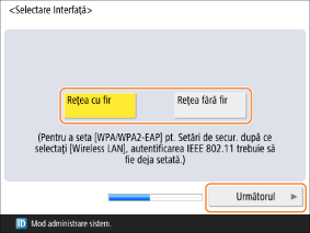 Dacă <Reţea cu fir> este selectatContinuați cu