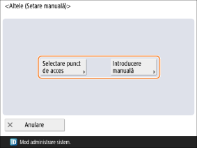 Apăsaţi <Selectare punct de acces> sau <Introducere manuală>.