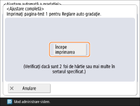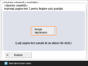 Apăsaţi <Începe imprimarea> pentru a imprima pagina de test 2. Îndepărtați pagina de test 1 de pe geamul plat, deoarece nu este utilizată la paşii următori.