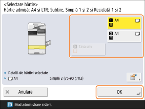 Selectaţi hârtia pe care urmează să o utilizați şi apăsaţi <OK>.