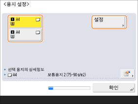 용지 공급원을 선택하고 <설정>을 누르십시오.
