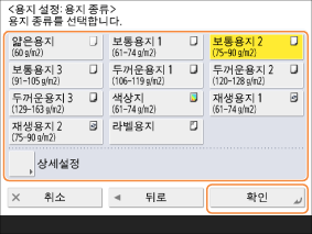 용지 종류를 선택하고 <확인>을 누르십시오.