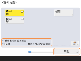 적재된 용지 종류가 표시되지 않으면 <상세설정>을 누르고 용지 종류를 선택합니다.