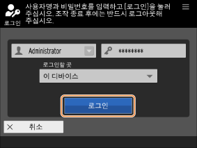 이후 설정에는 관리자 권한이 필요합니다. 설정을 구성하려면 <로그인>을 누르십시오.