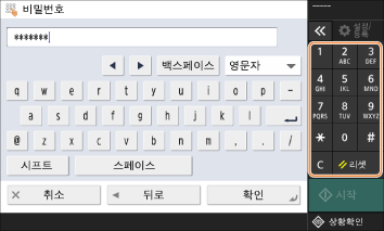 숫자 키를 사용하여 기본 비밀번호인 ‘7654321’을 입력하고 <확인>을 누르십시오.