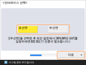 네트워크에 연결하는 방법을 선택하고 <다음>을 누르십시오.