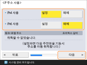 환경에 따라 IPv4 및 IPv6를 사용하도록 선택하고 <다음>을 누르십시오.