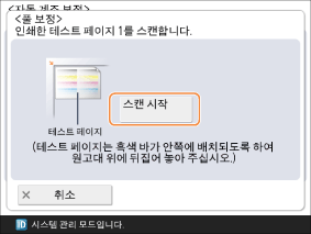 원고대에 테스트 페이지 1을 놓고 <스캔 시작>을 누릅니다.