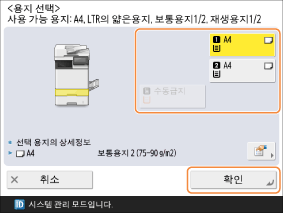 사용할 용지를 선택하고 <확인>을 누릅니다.