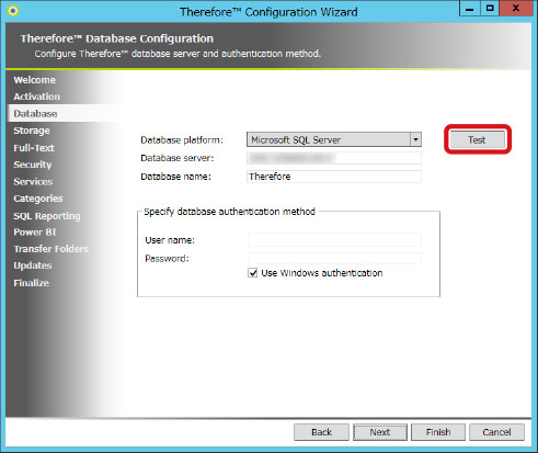 必ず[Test]をクリックし、データベースとの接続を確認してください。