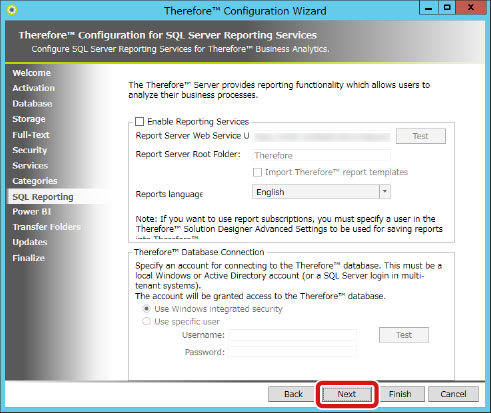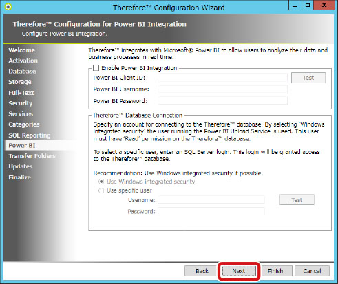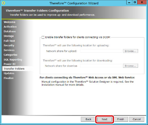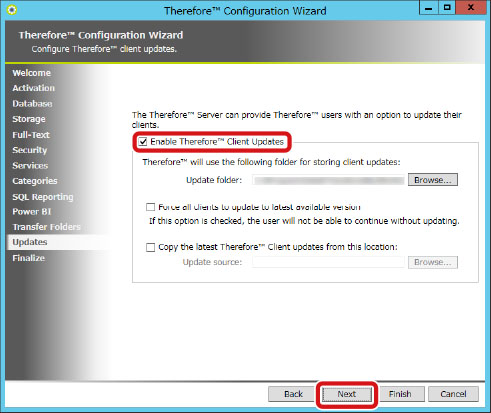 [Enable ThereforeTM Client Updates]のチェックをつけて、[Next]をクリックします