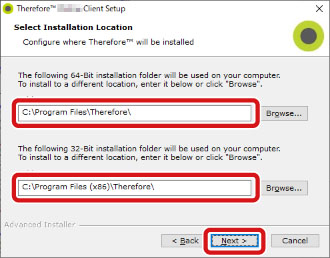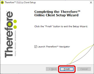 以下がインストールされていない場合は、必要なバージョンをインストールする画面が表示されます。画面の指示に従ってください。 - Microsoft .NET Framework - Microsoft Visual C++ インストールされる Microsoft .NET Framework のバージョンは、Therefore Client や OS のバージョン等により異なります。 Administrator 権限のあるユーザーでログオンして、インストールしてください。 |