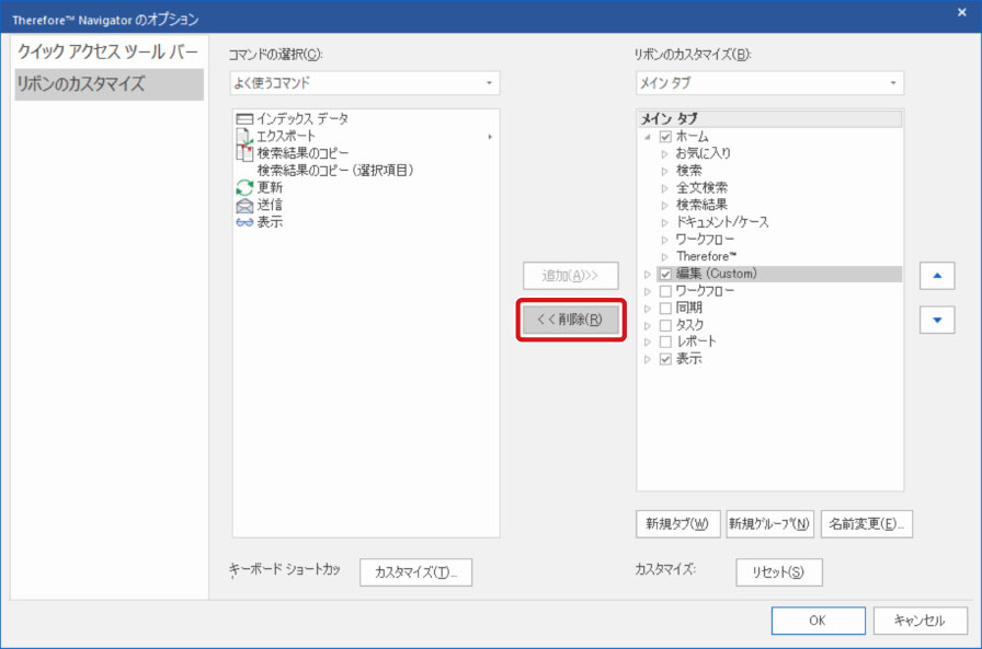 リボンからコマンドを削除する