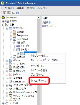 ThereforeTM Navigator上で、設定したいケース/カテゴリーを右クリックし、セキュリティー設定を確認することができます。