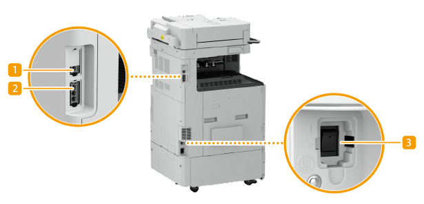Use this port to connect the Super G3 2nd Line Fax Board to the machine. System Options