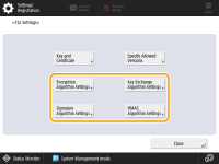 If <Format Encryption Method to FIPS 140-2> is set to <On>, an error will occur when you try to specify a certificate for TLS that uses an algorithm not recognized by FIPS (lower than RSA2048bit).