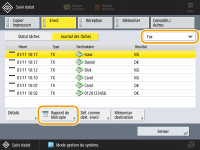 2 | Sélectionnez <Envoi> ou <Réception> dans la liste et appuyez sur <Rapport de gestion des communications>. ![]() |