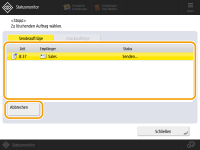 Wählen Sie den Auftrag aus, den Sie abbrechen möchten, und drücken Sie <Abbrechen>.