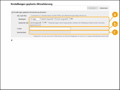 Aktivieren Sie das Kontrollkästchen für [Einstellungen geplante Aktualisierung aktivieren], und konfigurieren Sie die erforderlichen Einstellungen.
