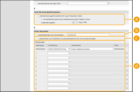 [Zeichenkette] | Geben Sie die Zeichenfolge ein, die am Attribut registriert wird und unter [Anwenderattribut zum Durchsuchen:] angegeben ist. Geben Sie den Gruppennamen ein, um die Rechte basierend auf der Gruppe festzulegen, zu der der Benutzer gehört. |
