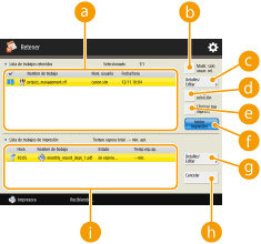Puede operar <Editar/confirmar tique de trabajo> solo si selecciona un trabajo con un billete de trabajo. Si selecciona un trabajo que se envía desde el controlador de impresora, no podrá editar el billete de trabajo.