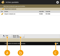 Puede crear carpetas y eliminar archivos guardados en dispositivos de memoria desde el equipo. Por ejemplo, puede guardar un archivo creado por un ordenador en un dispositivo de memoria y eliminarlo del equipo después de imprimirlo.