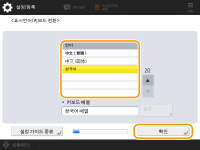 <표시언어/키보드 전환>을 누르고 목록에서 언어를 선택한 후 <확인>을 누릅니다.