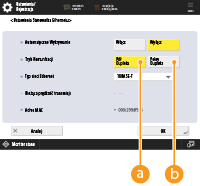 Wybierz <10BASE-T>, <100BASE-TX> lub <1000BASE-T> w <Typ sieci Ethernet>.