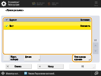 Восстановление предыдущих сведений об устройствеНа клиентском аппарате можно восстановить сведения об устройстве, которые использовались на нем до обновления информации. Однако можно восстановить лишь те сведения, которые использовались непосредственно перед обновлением. Более старые сведения восстановить не удастся. Также следует помнить, что параметры <Пар. пер. с URL> в разделе <Задать/Регистр. конфиденц. ячейки факса> (<Задать/Регистр. конфиденц. ячейки факса>) могут быть удалены, если данные для параметров <Значен. в меню Пар./Регистр.> и <Адресная книга> восстановлены в разное время. <Параметры рассылки сведений об устр-ве>
