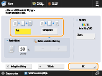 Om du vill placera bildformen utan att justera tätheten, tryck på <Fast>. Om du vill placera bildformen med minskad täthet, tryck på <Transparent> för att justera tätheten.