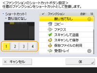 <ホーム>画面に表示されている機能のショートカットを作成することができます。他の機能を操作している途中でもショートカットが表示されていれば、<ホーム>画面に戻ることなく機能を呼び出すことができます。なお、ショートカットを作成するには、管理者としてログインする必要があります。