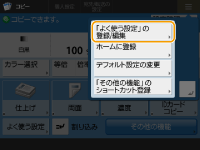 コピー、ファクス、スキャンなどで毎回同じ設定を使う場合や、複雑な設定を控えておきたい場合は、設定内容を「よく使う設定」として登録しておくと、すぐに呼び出すことができて便利です。