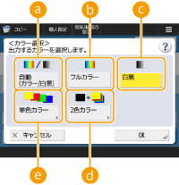 | | コピー時の色を選択することができます。たとえば、カラー原稿を白黒コピーすることでトナーを節約したり、チケットを赤や青の単色でコピーして配布日を区別したり、用途に合わせて使い分けることができます。 |