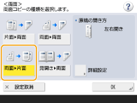 <原稿の開き方>と<コピーの開き方>を設定し、<OK>を押す