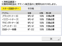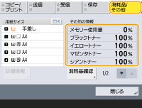 消耗品の残量は、リモートUIから確認することもできます。本機の状態を確認する |