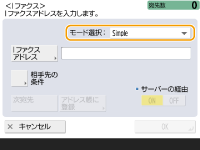 文書の送信結果を<状況確認>画面で確認できるように設定したい場合は<Full>を、確認しない場合は<Simple>を選びます。なお、相手機が送信モードの選択機能に対応していないと、送信結果を確認することはできません。また、相手機によっては<Simple>を選ばないと送信できない場合があります。